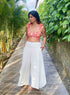 Pantalón palazo. Tela liviana y suave. Pretina en la parte del frente y encauchado en la parte de atrás para mejor ajuste y comodidad. Es perfecto para tu día a día o para un día de playa.