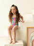 Enterizo para niñas con detalle de rush en los hombros. Traje de baño con protección UV.